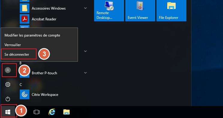 Cliquer sur l’icone Windows en bas -> cliquer sur le « Tête » -> Se déconnecter